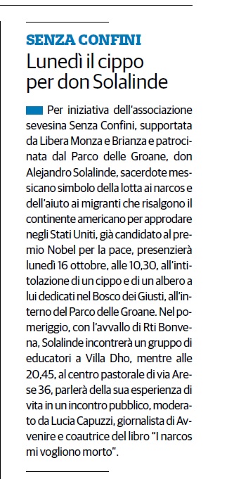 28/10/2016, Solaro, Pietro Bartolo nel Bosco dei Giusti