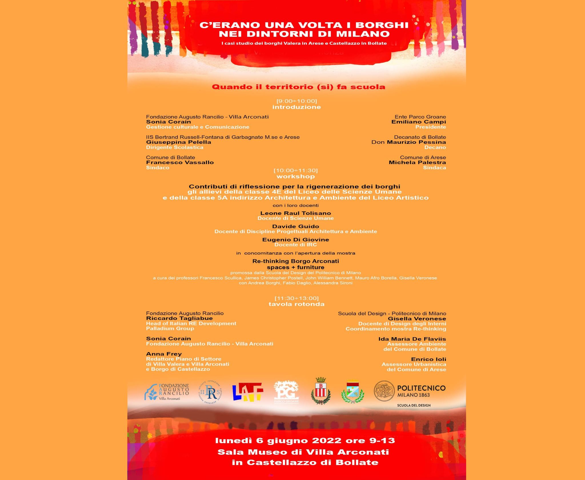 Nella locandina trovate i nomi di tutti i partecipanti. Di seguito, invece la riflessione del presidente, avvocato Campi sul valore della manifestazione: “C’è un sottile filo verde che lega la natura, la scienza, la cultura e l’istruzione ed è un onore che questo filo attraversi anche il nostro Parco delle Groane – ha commentato il presidente – Con questo spirito abbiamo subito aderito all’iniziativa “C’erano una volta i borghi nei dintorni di Milano” che analizza due casi ad Arese e a Bollate. Mi piace anche il sottotitolo dell’evento, Quando il territorio (si) fa scuola. Io quasi quasi toglierei le parentesi dal “SI”, perché mai come in questi anni in cui abbiamo riscoperto il territorio vicino, il verde sotto casa a causa delle restrizioni da Covid, abbiamo anche apprezzato le bellezze di questo territorio. Territorio che se diventa Parco, come il nostro Parco delle Groane si conserva e preserva e manda un segnale positivo anche per le generazioni future”.