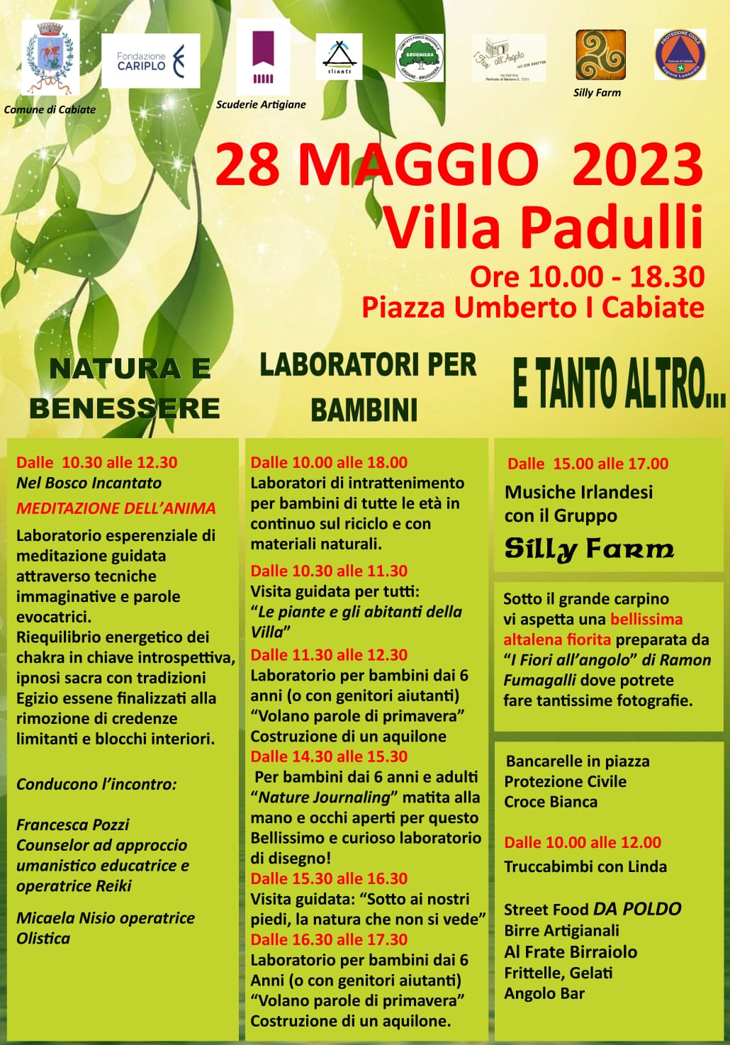 Siete pronti a vivere con tutta la famiglia una vera e propria giornata da protagonisti di una fiaba? Allora segnatevi in agenda il 28 maggio, domenica. Dove? Ma a Villa Padulli in piazza Umberto a Cabiate naturalmente, all’interno del nostro grande Parco delle Groane e della Brughiera Briantea. Appuntamento dalle 10 alle 18.30 con una serie di animazioni eventi, musica e buona cucina.