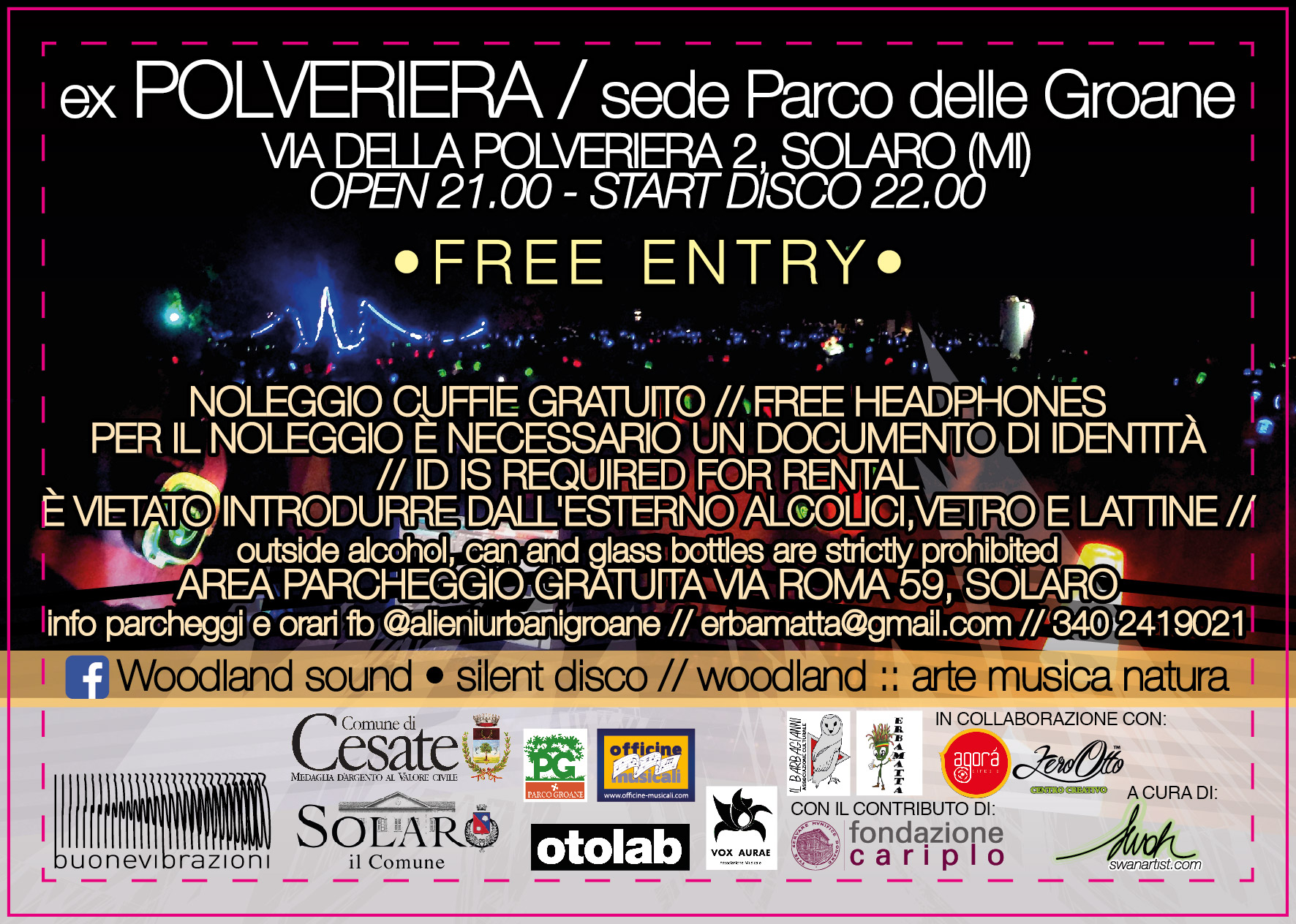 woodland_flyer_ASbarca al Parco delle Groane “Woodland – Arte, Musica, Natura”, un grande evento che durerà due settimane organizzato in collaborazione con il Comune di Cesate, Biblioteca di Cesate e tre associazioni culturali – Officine Musicali, Otolab e Vox Aurae – nell’ambito del progetto triennale Buone Vibrazioni finanziato da Fondazione Cariplo. Il piatto forte di Woodland sarà Shot | Inneschi contemporanei in Polveriera ovvero fare arte utilizzando il paesaggio, non solo come soggetto ma come materia prima dell’opera grazie alla creatività di giovani artisti. Il progetto Residenza Shot opererà all’interno del Centro Parco Polveriera che ospiterà, 24 ore su 24, sette artisti che utilizzeranno i materiali offerti dalla natura circostante per le loro opere, in un’ottica di continua condivisione e stimoli reciproci. Al termine della residenza si procederà all’installazione delle opere nell’area verde boschiva della ex Polveriera con un percorso espositivo che, all’ultima giornata, verrà aperto al pubblico.
