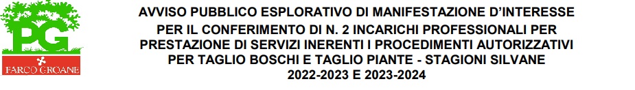 Avviso pubblico manifestazione d’interesse per il conferimento di n. 2 incarichi professionali per prestazione di servizi inerenti i procedimenti autorizzativi per taglio boschi e taglio piante – stagioni silvate 2022-2023 e 2023-2024