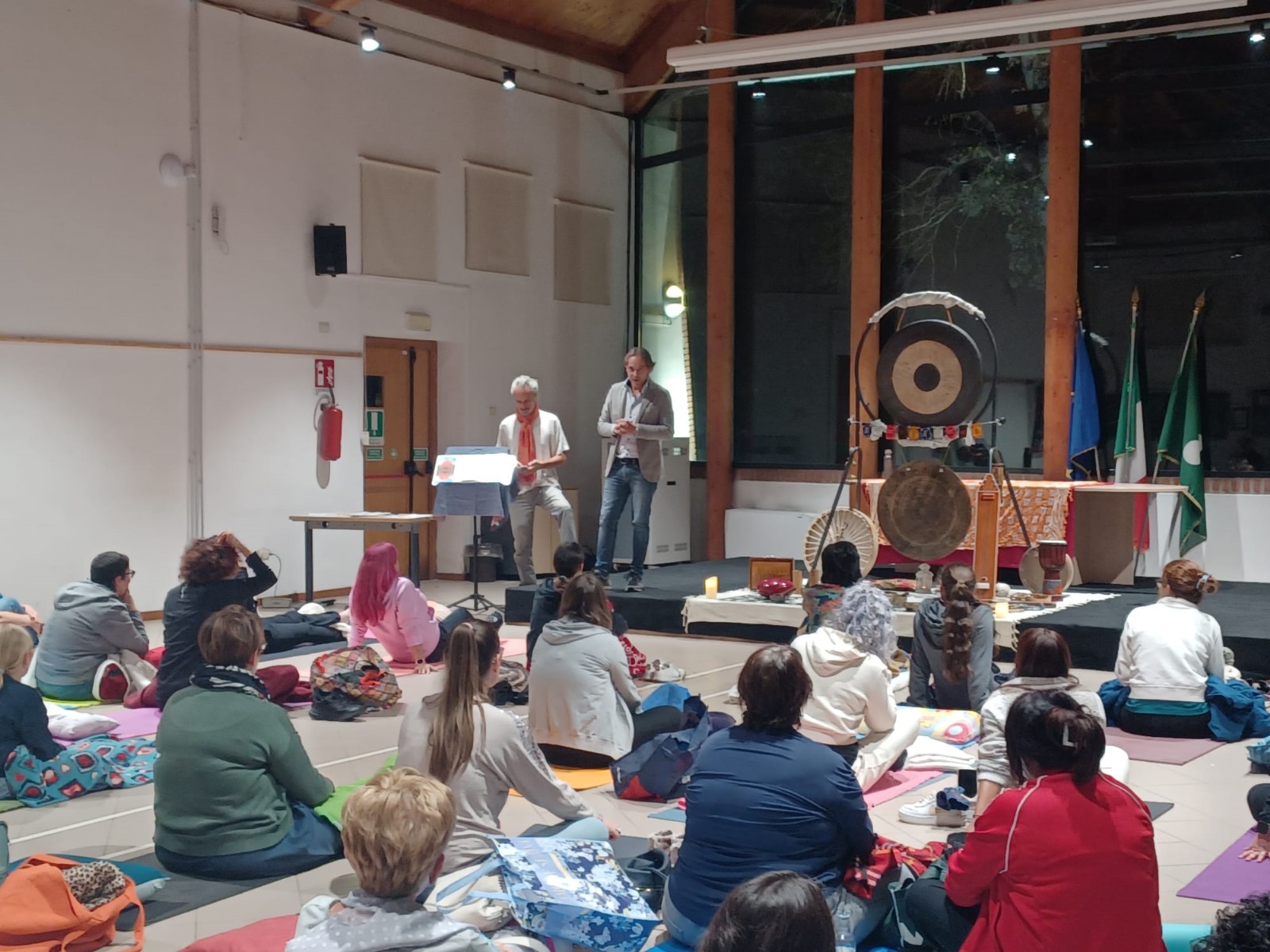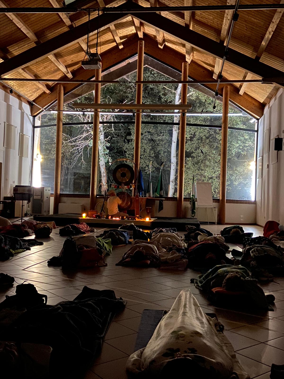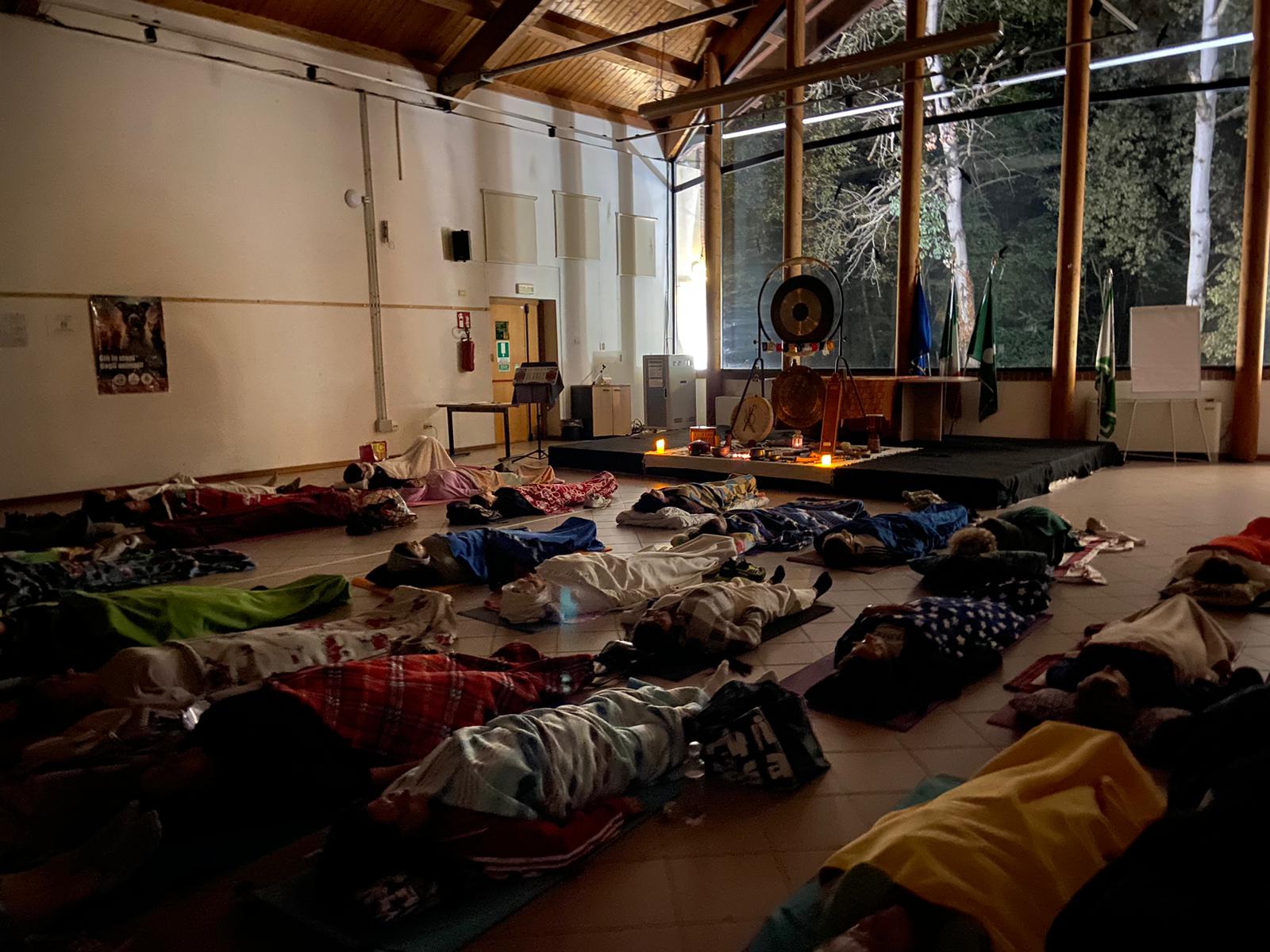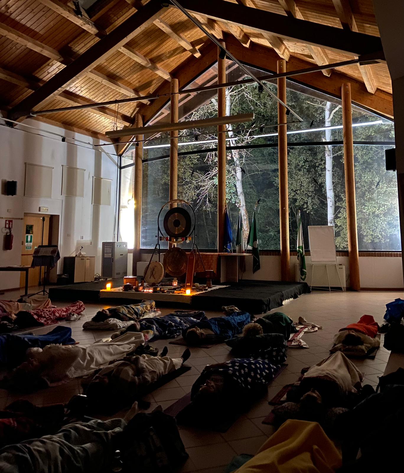 Protagonista dell’iniziativa è stato Enrico Bilotta, ricercatore olistico, già volontario del Parco e oggi attivo con la sua attività tra Liguria e Piemonte. È stato lui a guidare i presenti in un percorso meditativo, un’immersione nei suoni e nelle vibrazioni dei potenti gong e di altri strumenti ancestrali. Distesi a terra su tappetini e coperte, i partecipanti hanno vissuto un’esperienza profonda, capace di favorire rilassamento e introspezione.