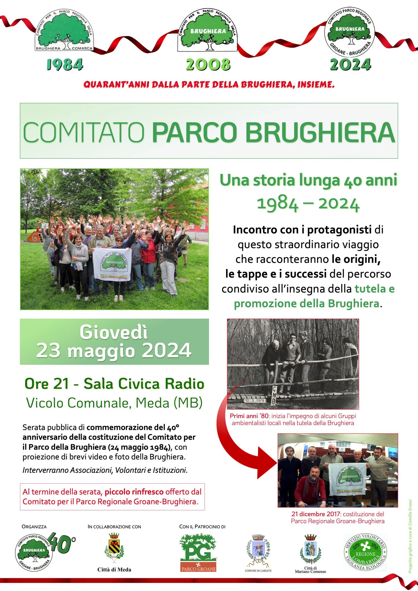 Giovedì 23 maggio alle 21 nella sala civica Radio di vicolo Comunale a Meda è prevista una serata con la proiezione di brevi video e foto oltre all’intervento di volontari, associazioni e istituzioni che hanno condiviso con il Comitato una parte del cammino all’insegna della tutela del territorio. Al termine della serata è previsto un rinfresco offerto dallo stesso Comitato.