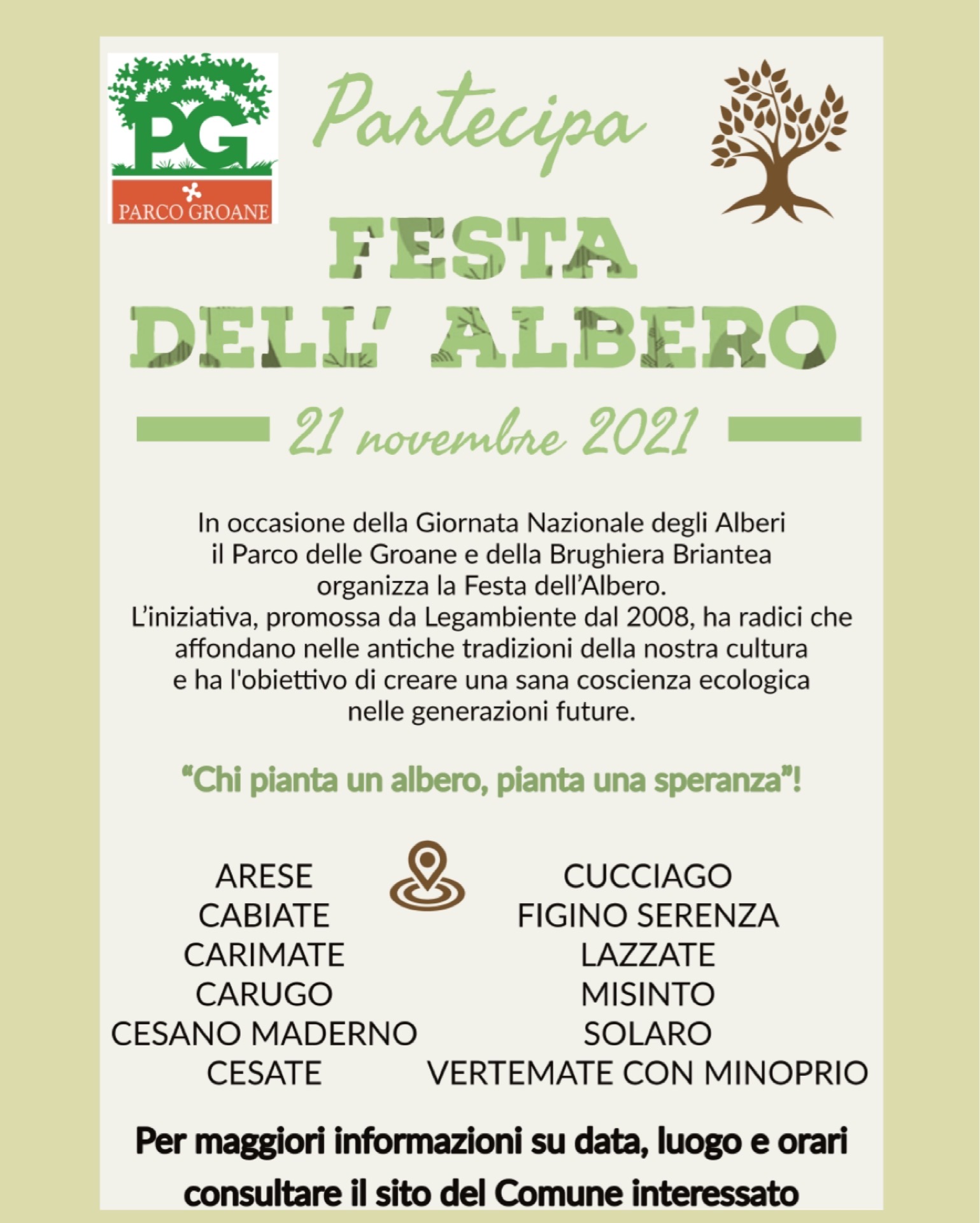 Amici del Parco. In occasione della Giornata nazionale degli alberi che si celebrerà il 21 novembre organizzeremo una festa, la FESTA DELL’ ALBERO .
