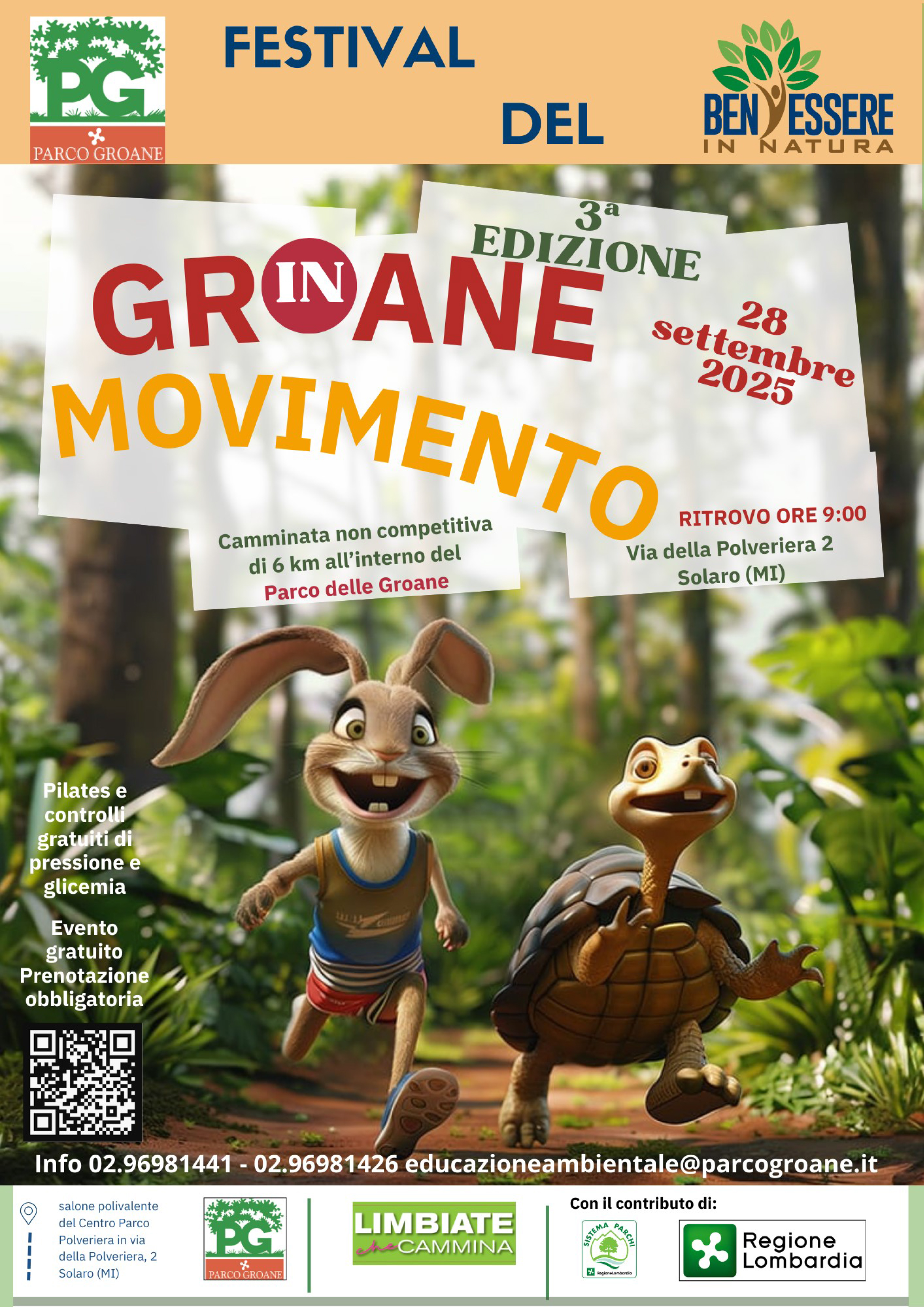 Il 28 settembre il Parco delle Groane ospiterà la terza edizione di Groane in Movimento, una camminata non competitiva di 6 km pensata per tutti. Il ritrovo è fissato alle ore 9 in via della Polveriera 2 a Solaro, da dove i partecipanti partiranno per un percorso immerso nella natura, con controlli gratuiti di pressione e glicemia. La partecipazione è gratuita, ma è richiesta la prenotazione tramite QR code sulla locandina.