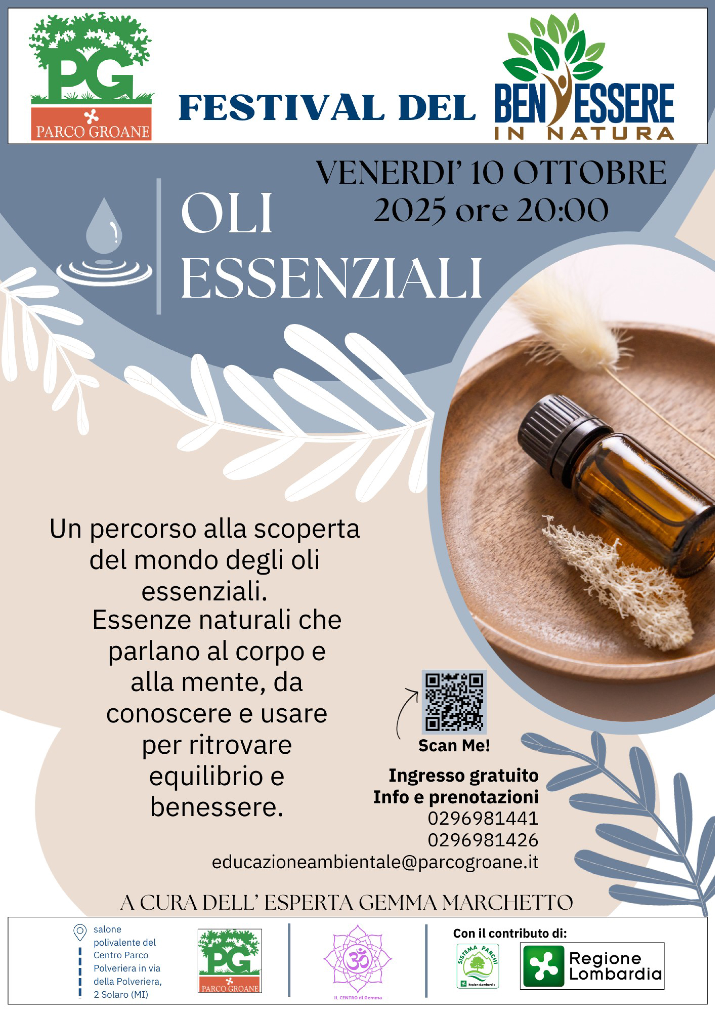 Il 2 ottobre il Parco delle Groane offrirà un incontro dedicato agli oli essenziali e al loro utilizzo per il benessere psicofisico. L’evento si terrà alle 20.00 presso il Centro Parco Polveriera di Solaro. Esperti guideranno i partecipanti alla scoperta delle proprietà degli oli essenziali e delle loro applicazioni pratiche per migliorare l’umore, favorire il rilassamento e stimolare i sensi.