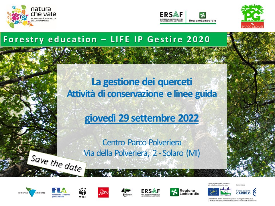 Ersaf (Ente regionale per i servizi all’agricoltura e alle foreste), nell’ambito del progetto Life Ip Gestire 2020 e in collaborazione con il nostro Parco delle Groane, organizza il 29 settembre un incontro formativo, rivolto in particolare a tecnici e liberi professionisti, sui querceti della Direttiva Habitat diffusi in Lombardia.
