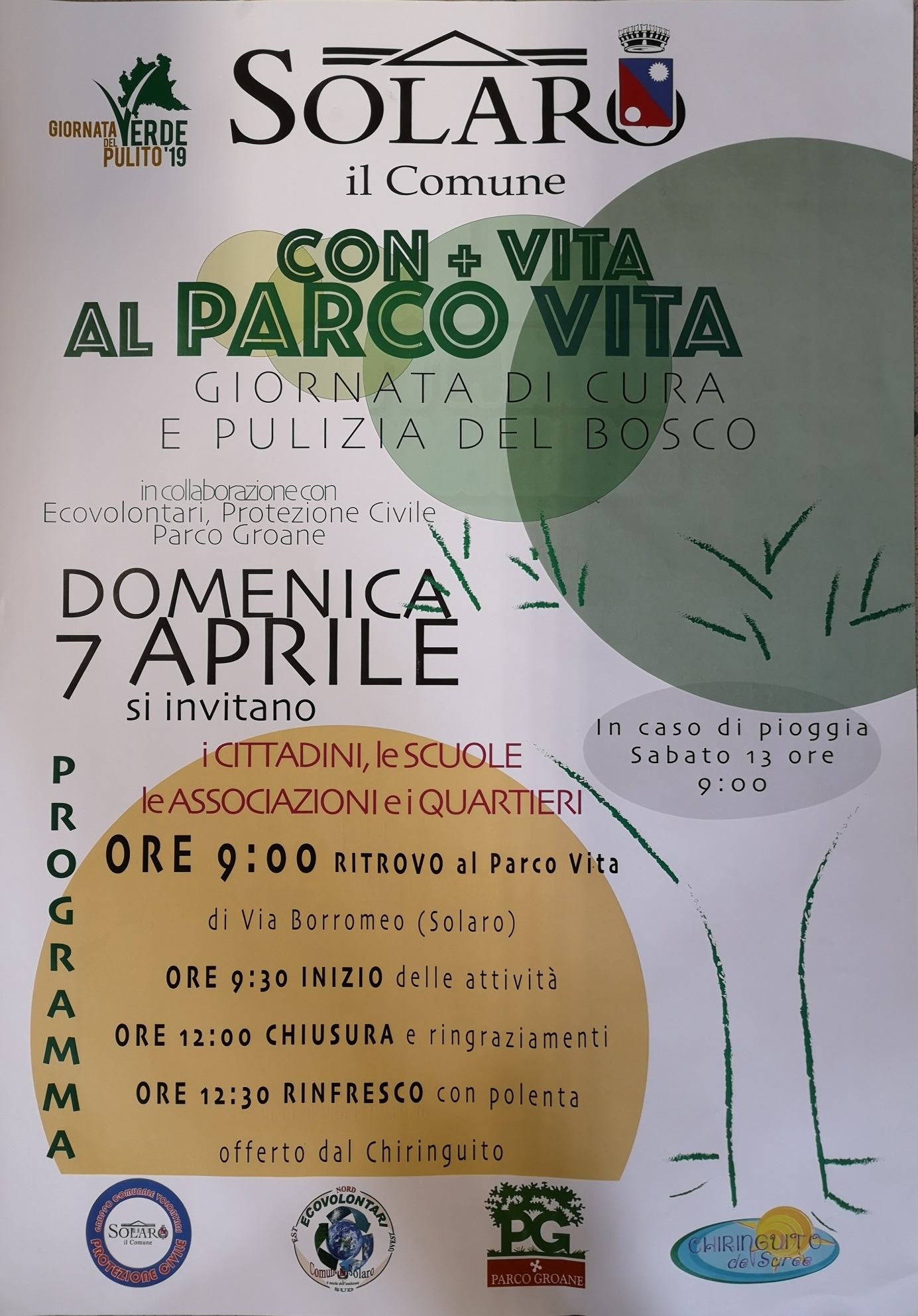 Comune Di Solaro: ritrovo sabato 13 alle 9.00 al Parco Vita di via Borromeo (presso il Chiringuito de Surèe).