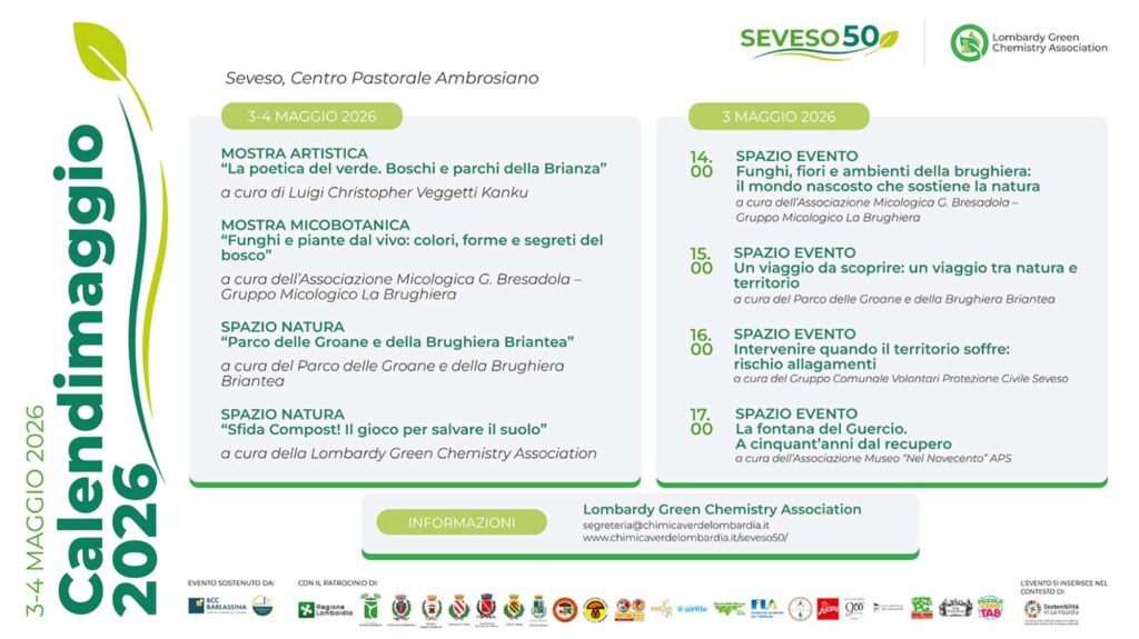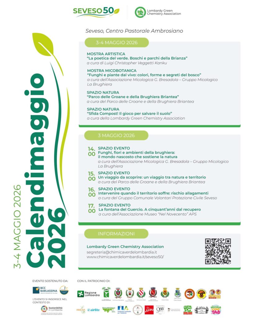 Il Parco delle Groane e della Brughiera Briantea patrocina e sarà tra i protagonisti di Calendimaggio 2026, in programma domenica 3 e lunedì 4 maggio al Centro Pastorale Ambrosiano di Seveso, nell’ambito delle iniziative promosse da Seveso50 e Lombardy Green Chemistry Association.