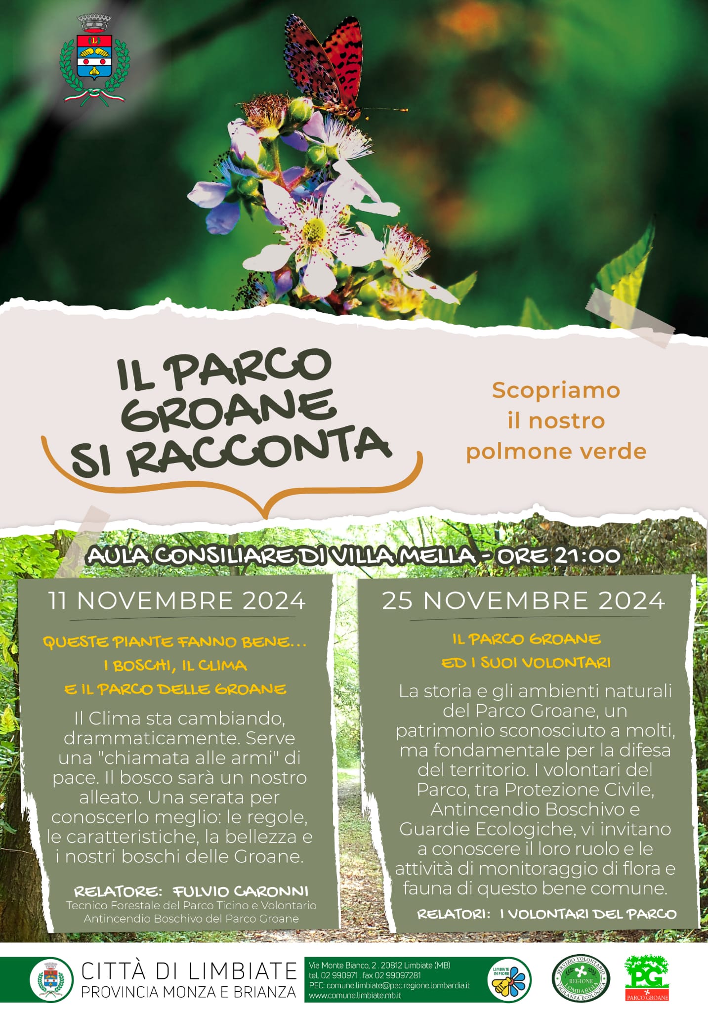 Doppio appuntamento a Limbiate nell’aula consigliare di Villa Mella con il Parco delle Groane e della Brughiera Briantea. La Città di Limbiate con il nostro Parco, le Gev (Guardie ecologiche volontarie) e con Limbiate in Fiore invitano la cittadinanza a “Il Parco Groane si racconta. Scopriamo il nostro polmone verde”.