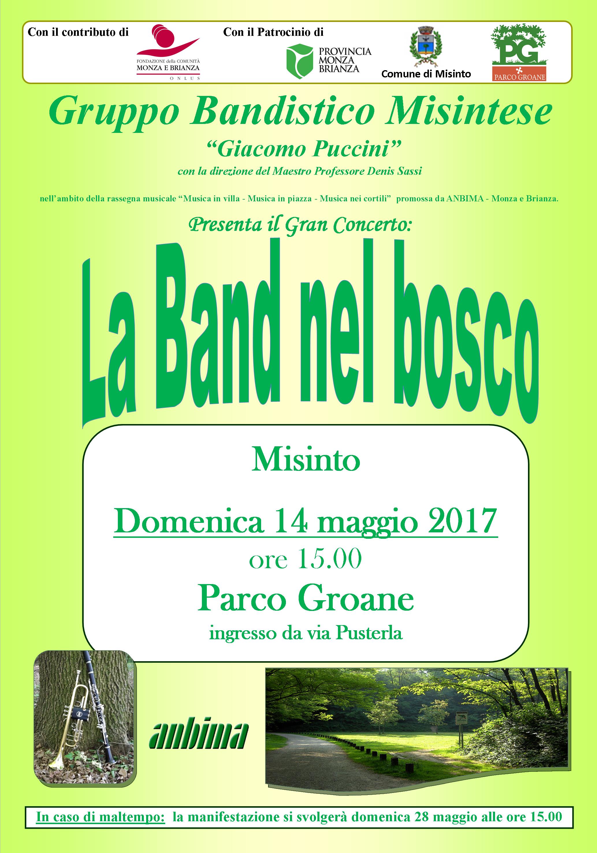 La band nel boscoSolo per lo scenario assolutamente unico nel suo genere in cui si terrà merita la vostra presenza. Stiamo parlando dell’anfiteatro naturale di Misinto che si trova all’interno del Parco delle Groane (con ingresso da via Pusterla) e che domenica 14 maggio sarà la location del gran concerto “La Band nel bosco” interpretato dal gruppo bandistico misintese “Giacomo Puccini” diretto dal maestro professore Denis Sassi. L’appuntamento è per le ore 15.00.