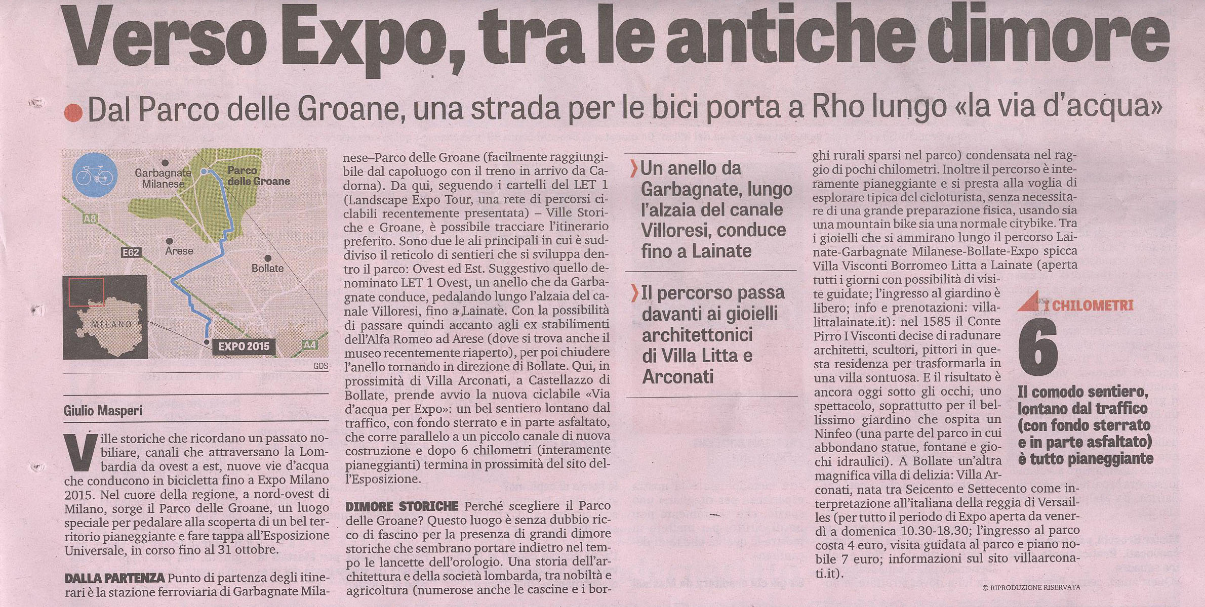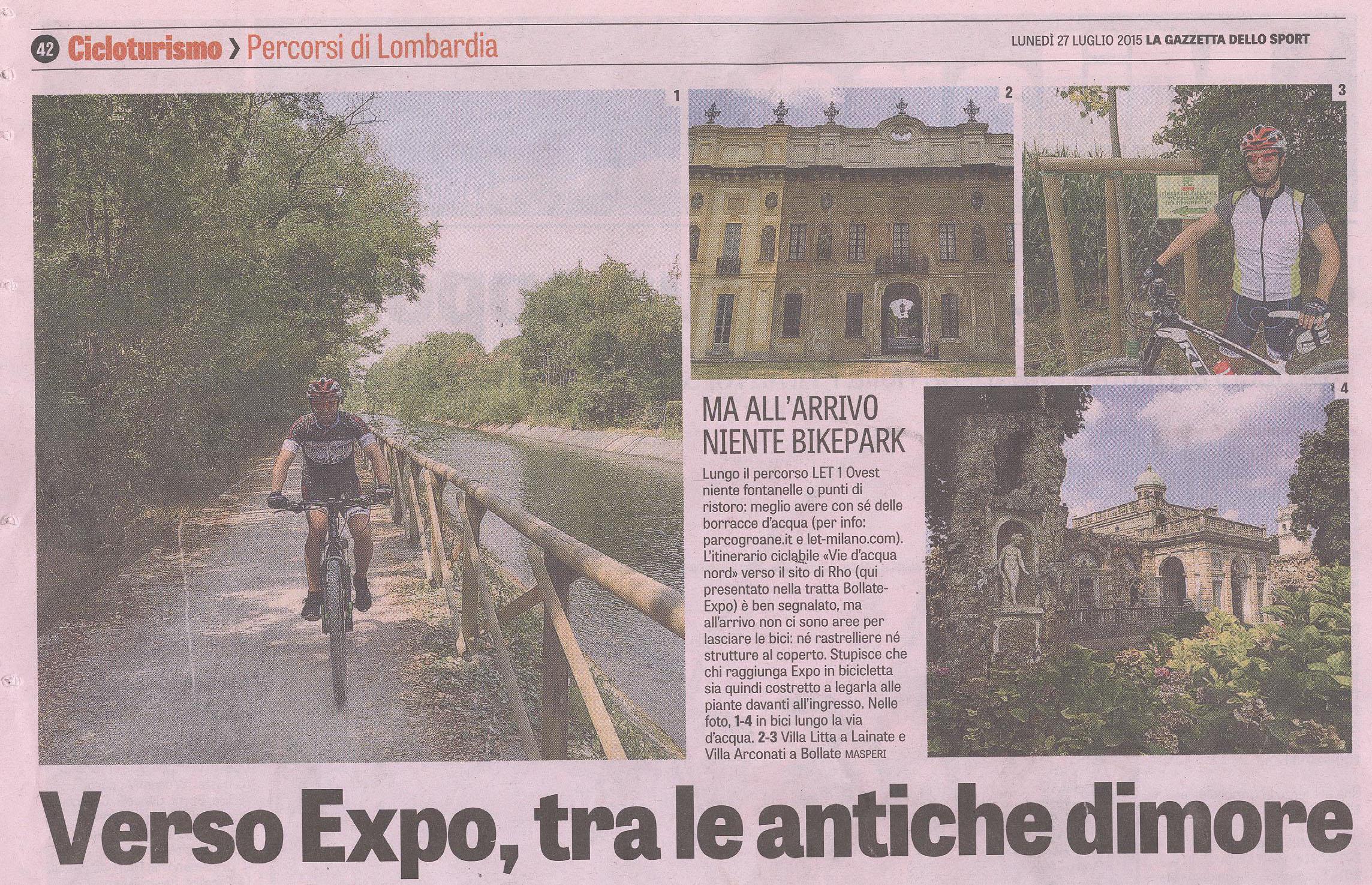 By ComunicazioneIn News28th luglio, 2015Anche la Gazzetta dello Sport (nell’edizione in edicola lunedì 27 luglio) ha dedicato un’intera pagina alla pista ciclabile (con tanto di mini-cartina) che collega il Parco delle Groane a Expo nell’ambito della rubrica “Cicloturismo – Percorsi di Lombardia”. Corredano il servizio, a firma di Giulio Masperi, belle foto e un ampio articolo in cui si parla del Parco delle Groane e delle sue attrattive artistiche e naturalistiche.