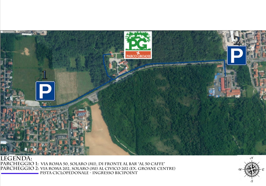 Non sarà possibile accedere alla sede del Parco in auto, ma si potrà parcheggiare di fronte a via Roma, 50 – Solaro, sulla Monza-Saronno (di fronte al bar “Al 50 Cafè”). L’Info Point del Centro Parco Polveriera è raggiungibile comodamente a piedi percorrendo 300 metri sulla pista ciclopedonale del Parco. Alleghiamo la planimetria del Parcheggio 1. Sarà possibile utilizzare anche il Parcheggio 2, ma si prega di prestare grande attenzione all’attraversamento della Monza-Saronno in quanto non sono presenti le strisce pedonali.