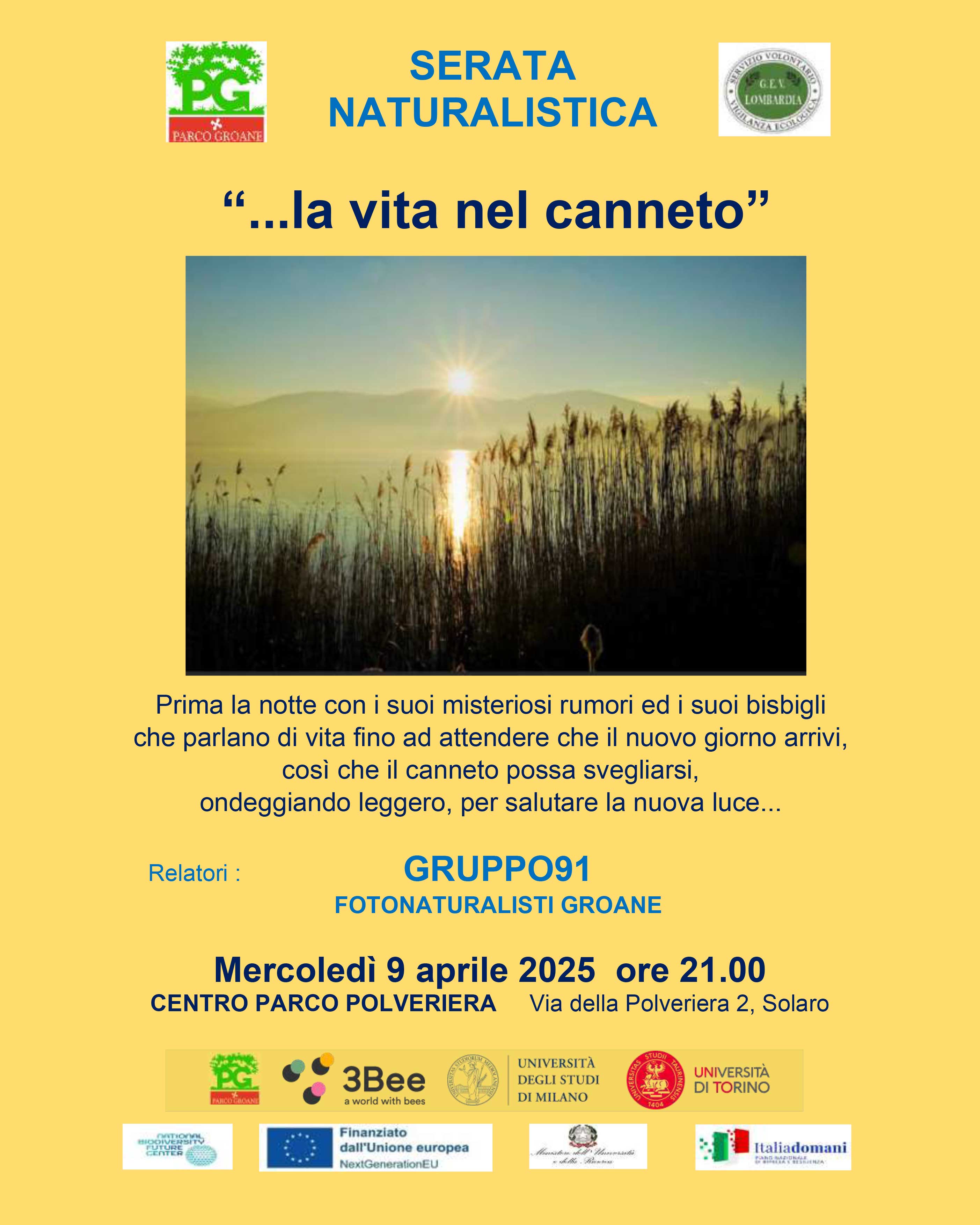 Il primo appuntamento è con “La vita nel canneto” raccontata dal Gruppo91 Fotonaturalisti Groane, mercoledì 9 aprile alle 21 al Centro Parco Polveriera di via della Polveriera 2 a Solaro.
