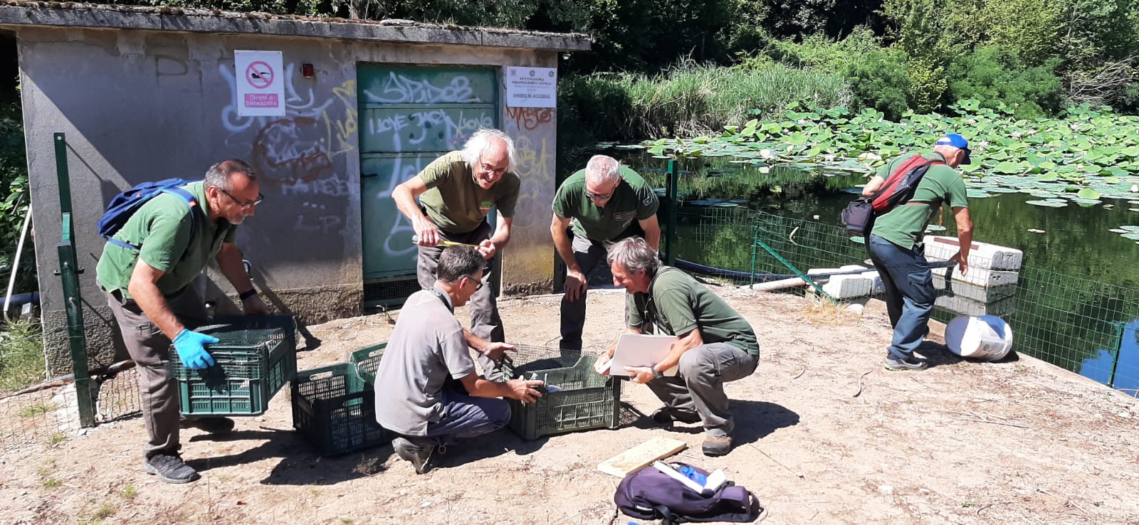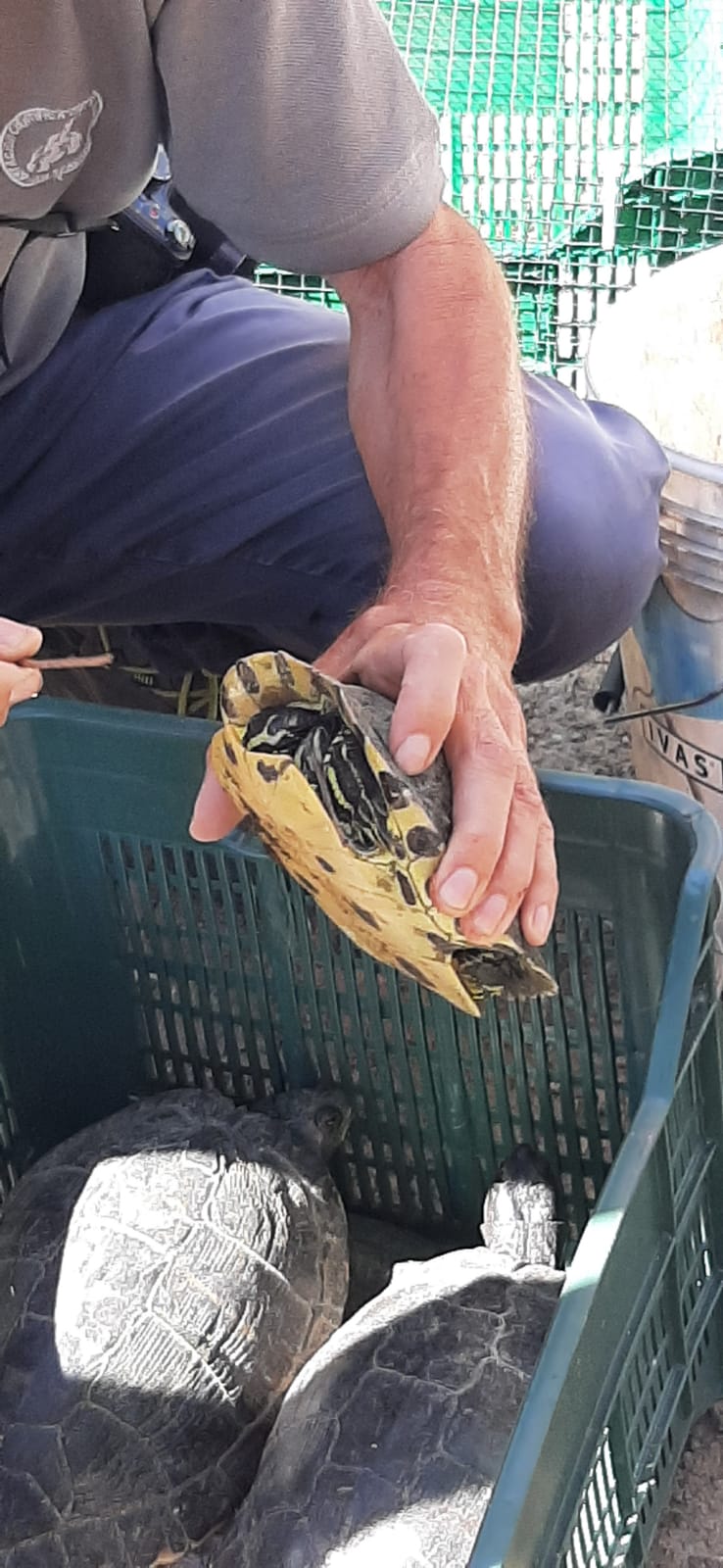 Si tratta della fase finale di un corso specifico per le nostra Gev, gestito dallo stesso professor Ferri e mirato a rendere il Gruppo del Parco tecnicamente operativo per il monitoraggio di queste testuggini esotiche nel territorio e per gestire l’accoglienza di esemplari catturati nella Golena del fiume Po, in provincia di Cremona.
