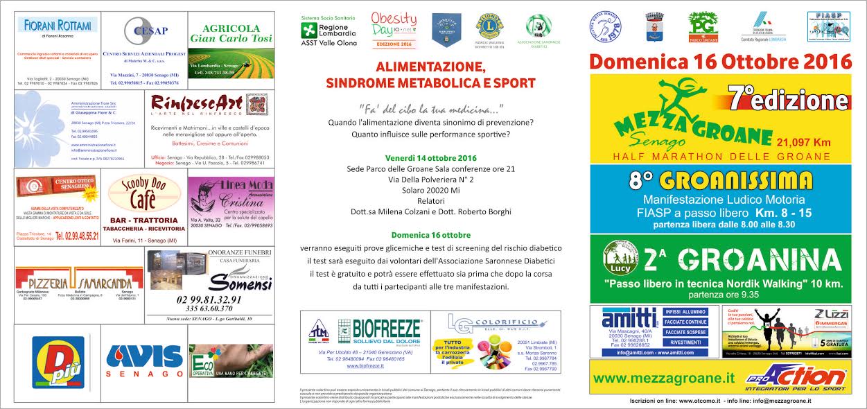 mezzagroaneIn occasione del 40esimo della istituzione del Parco delle Groane e nell’ambito della manifestazione sportiva MezzaGroane patrocinata dal nostro ente, il Parco regionale delle Groane e Atletica Virtus Senago vi invitano alla serata dedicata ai corretti stili di vita e alimentazione che si terrà presso la sala conferenze del Centro Parco Polveriera di Solaro alle 21.00 di venerdì 14 ottobre. La dottoressa Milena Colzani, diabetologa, il dottor Roberto Borghi, medico di Medicina Generale, il dottor Angelo Mazzuccato di ProAction, interverranno sul tema “Fa del cibo la tua medicina: quando l’alimentazione diventa sinonimo di prevenzione? Quanto influisce sulle performance sportive?”. Inoltre domenica 16 si correrà la 7° edizione della MezzaGroane, gara competitiva FIDAL, sulla classica distanza della mezza maratona, contemporaneamente l’8^ edizione della Groanissima, manifestazione ludico motoria FIAPS (8 e 15 Km) aperta a tutti e la 2^ Groanina, camminata Nordic Walking di 10 Km. Tutte e tre le manifestazioni avranno come scenario le piste pedonali del Parco Groane attraversando anche i giardini di Villa Arconati a Castellazzo di Bollate. Per tutte le informazioni scaricate i volantini cliccando QUI e QUI.