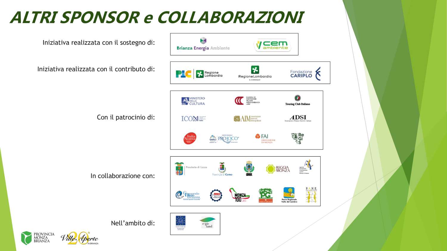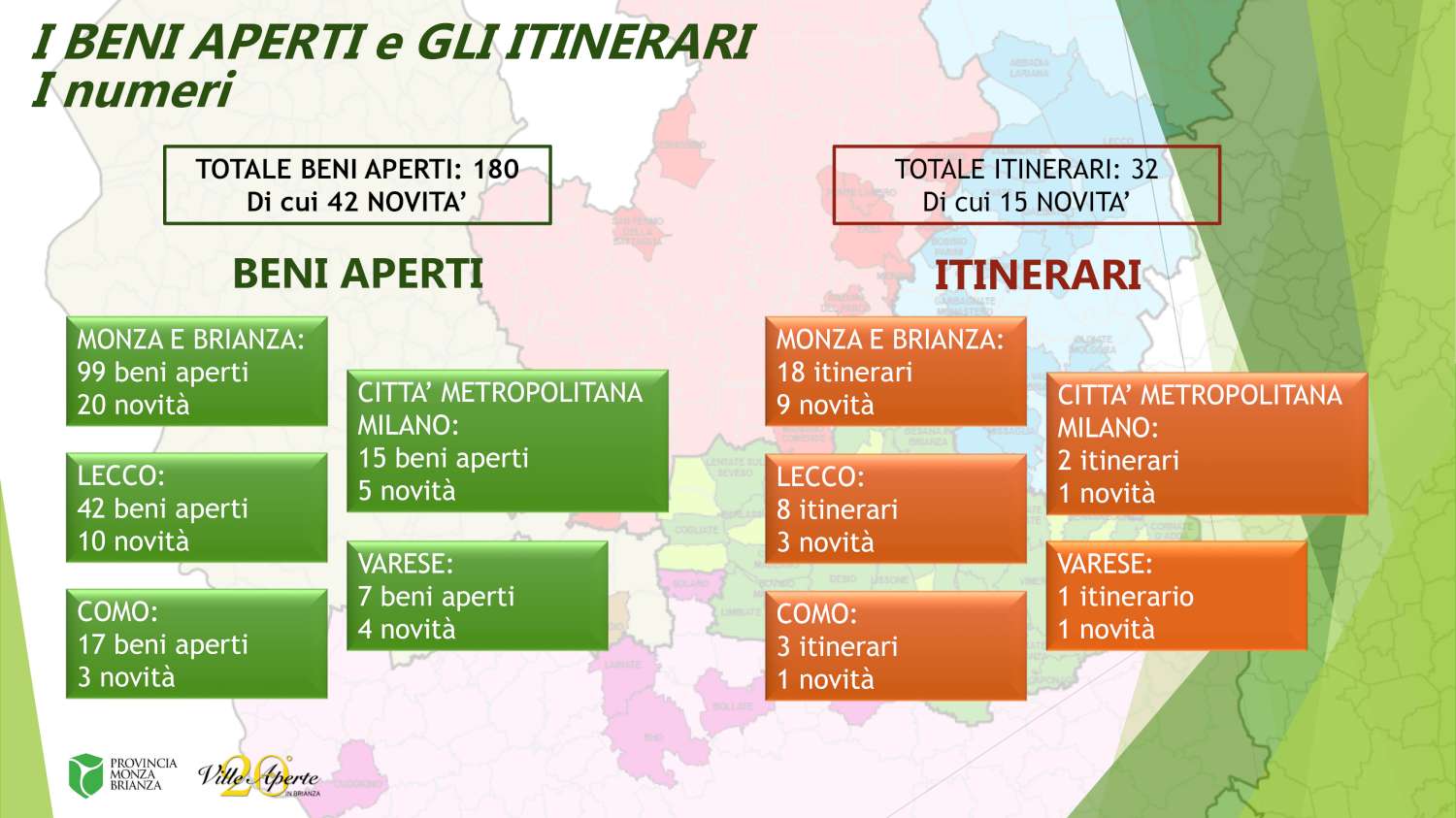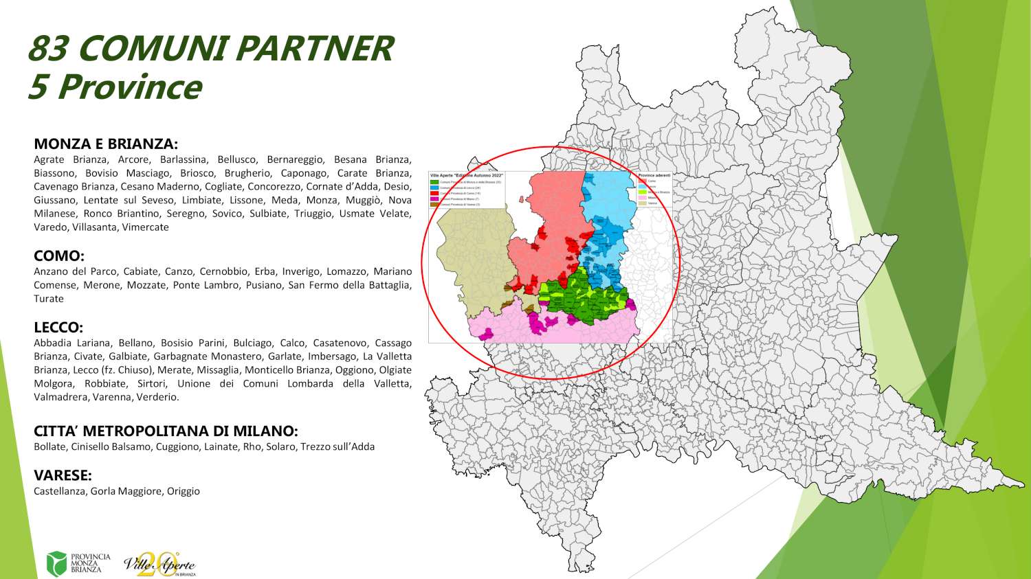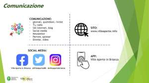 All’interno del territorio del Parco delle Groane sarà possibile visitare anche numerosi altri gioielli immersi nel verde. Sul sito www.villeaperte.info è possibile trovare l’elenco completo dei siti attiva anche un’applicazione per smartphone “Ville Aperte in Brianza” oltre ai canali social Facebook Ville Aperte in Brianza e Instagram @villeapertebrianza