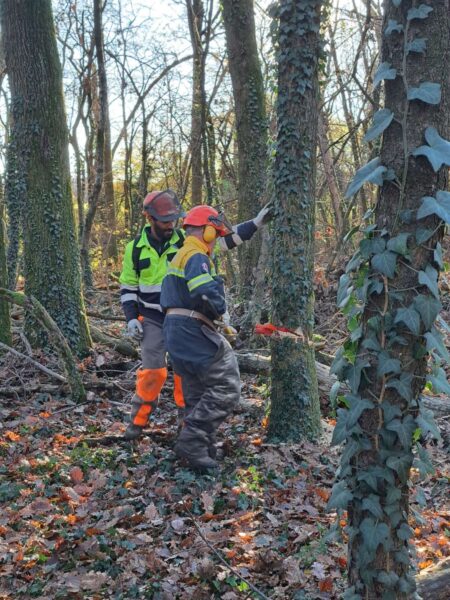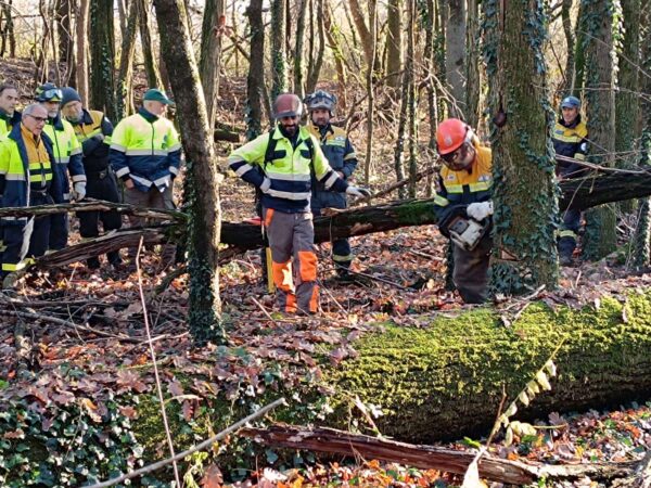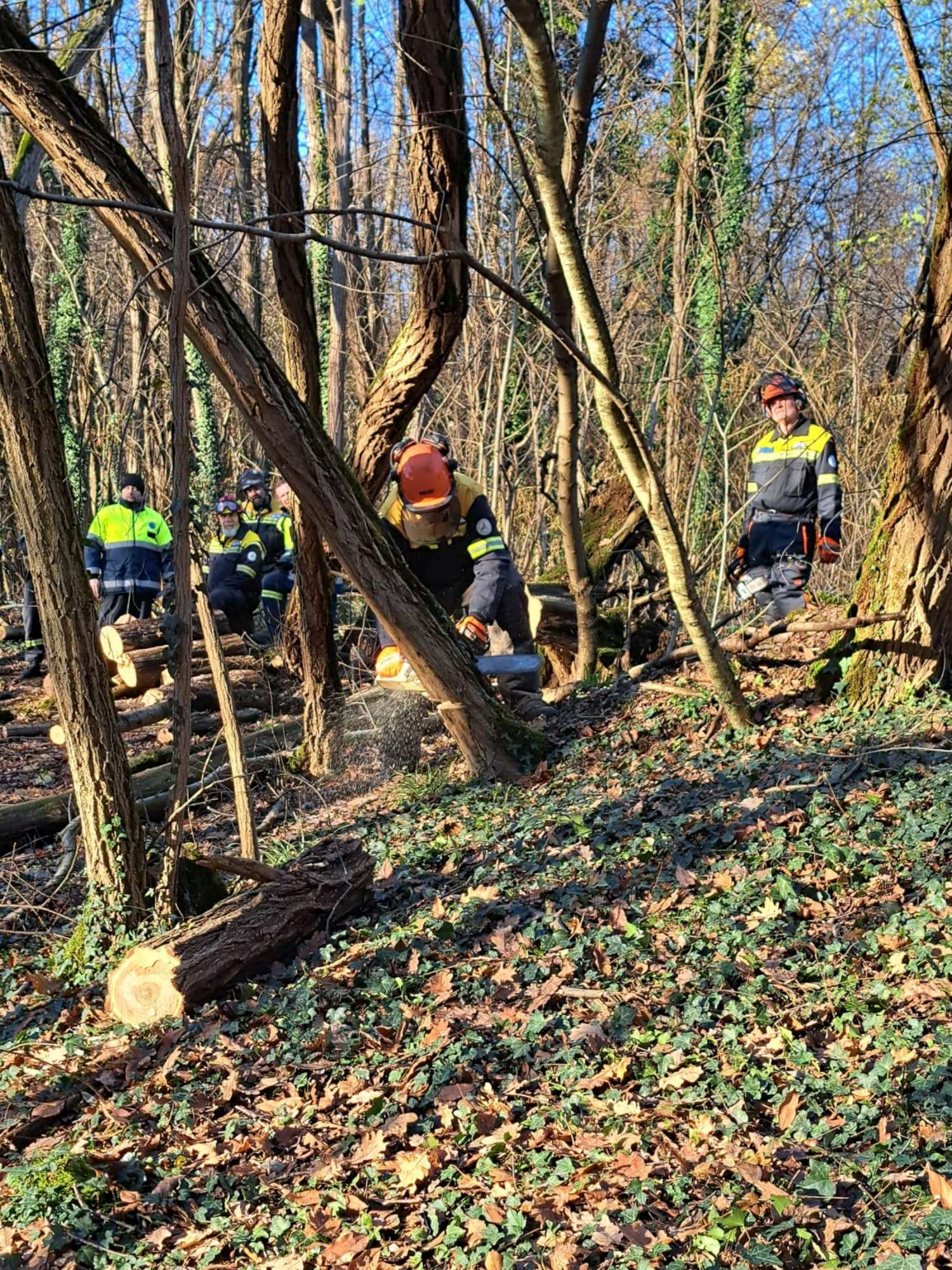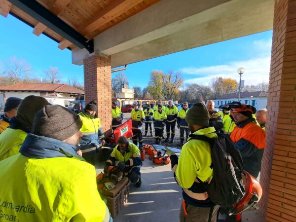 Lo scorso weekend trenta volontari del Parco delle Groane e della Brughiera Briantea, appartenenti al servizio di Protezione Civile e al gruppo Aib (Antincendio boschivo), hanno partecipato a un corso di aggiornamento sull’utilizzo sicuro della motosega, organizzato dall’Ana (Associazione Nazionale Alpini) sezione Vallecamonica. L’iniziativa ha l’obiettivo di fornire competenze teoriche e pratiche essenziali per operare in sicurezza durante la manutenzione del verde, il taglio controllato e l’abbattimento di alberi. L’esercitazione si è svolta nei boschi tra Solaro e Ceriano Laghetto, dove i volontari hanno potuto mettere in campo le loro conoscenze, contribuendo alla pulizia del sottobosco e alla messa in sicurezza di alcuni passaggi dei sentieri. Non si tratta solo di attività di manutenzione: ogni intervento di questo tipo riduce il carico combustibile e abbassa il rischio di incendi, proteggendo il patrimonio naturale e le persone che frequentano i boschi.